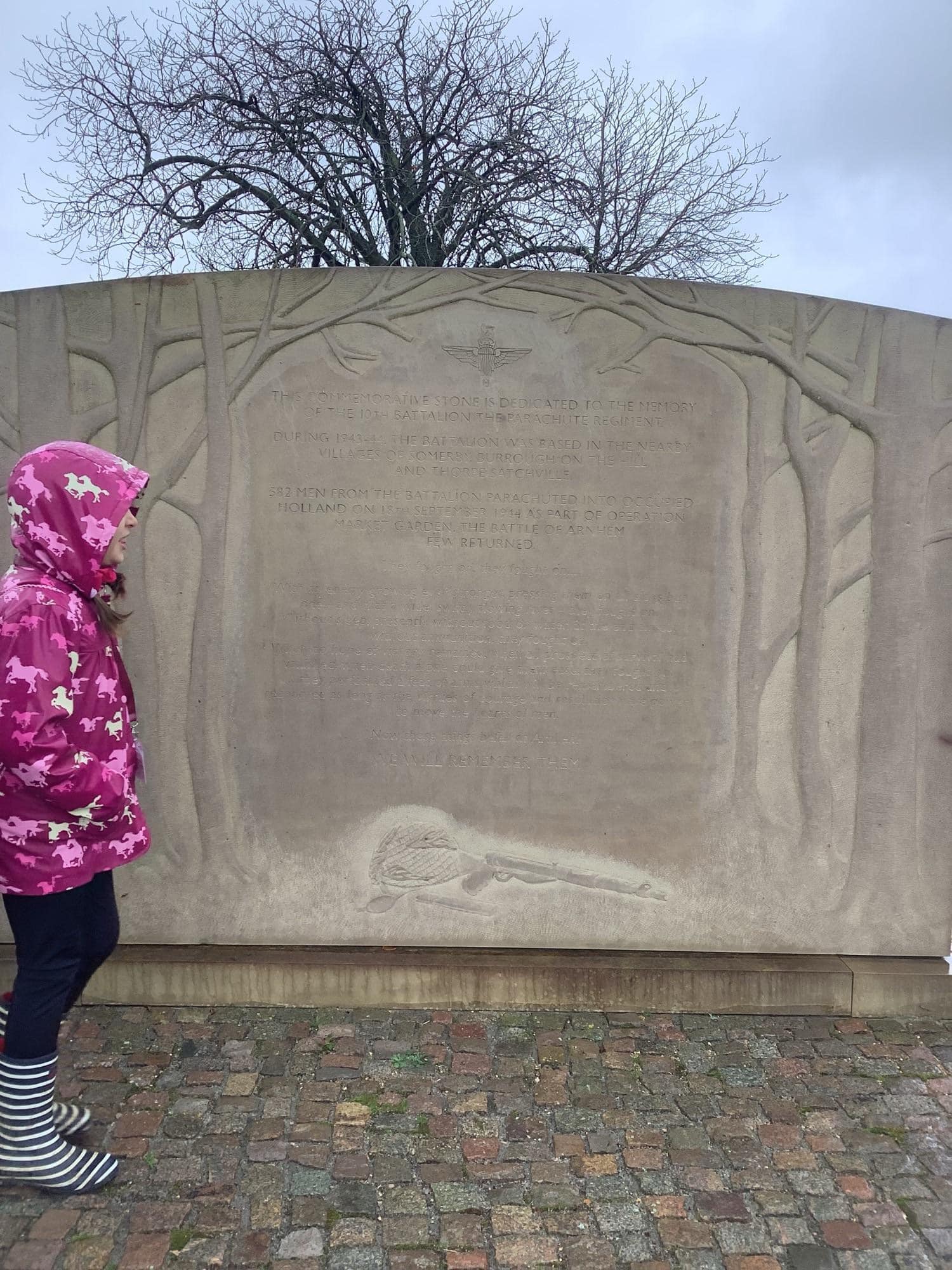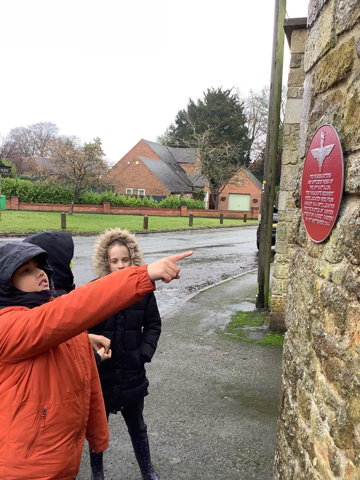 Wet and cold weather didn’t dampen their enthusiasm of exploring Somerby, spotting the maroon 10thBattalion plaques which mark places where the paras worked, stayed, and played. Again, pupils were encouraged to think about and imagine what life may have been like for the Paras, the Land Army Girls housed close by, as well as the villagers, who so generously, welcomed the Paras into their lives during the nine months they spent in the area.